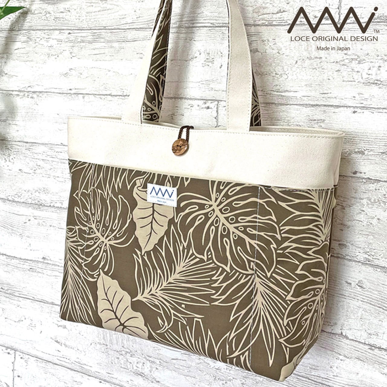 ハワイアン肩掛けトートバッグのMサイズより、横幅を4cm広くしたLサイズの肩掛けトートバッグです。